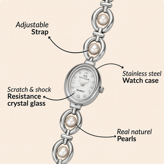 Every detail reflects timeless refinement — from real natural pearls and a polished stainless steel case, to crystal glass designed to resist scratches and shocks. A versatile classic that captures sophistication in its purest form.