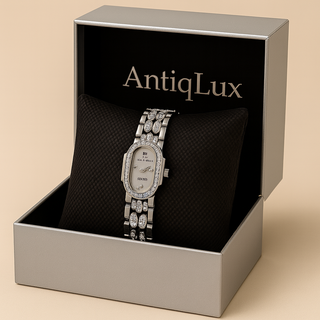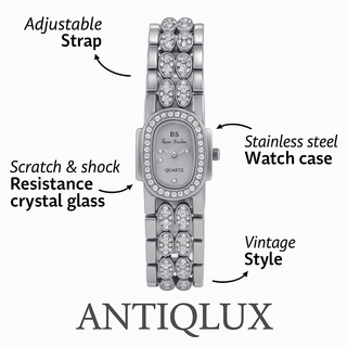 With hand-set crystals, a polished stainless steel finish, and crystal glass built to resist scratches and shocks — this Antiqlux design radiates timeless poise and understated luxury made to endure.