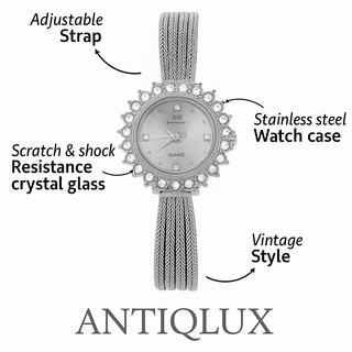 With its crystal-studded bezel, polished stainless steel case, and scratch-resistant crystal glass — this Antiqlux piece captures timeless elegance designed to shine beautifully through every occasion.