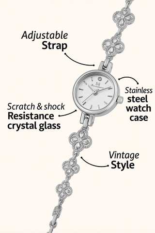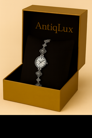 A refined statement of craftsmanship — from its intricate floral links to its gleaming silver finish — this Antiqlux piece captures the charm of vintage jewelry with the precision of modern watchmaking.