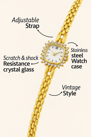 With its radiant bezel and softly rounded face, this Antiqlux design redefines vintage charm — a golden silhouette that feels as graceful as the woman who wears it.