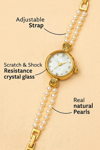 Every detail is crafted for enduring elegance — from genuine natural pearls and a fully adjustable strap, to crystal glass engineered to resist life’s scratches and shocks.